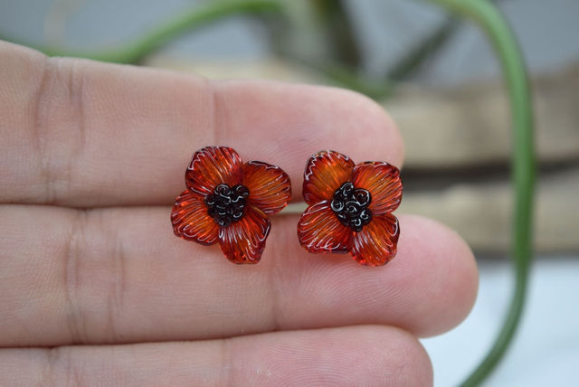 Les pétales sont faites unes à unes et assemblées sous la flamme.