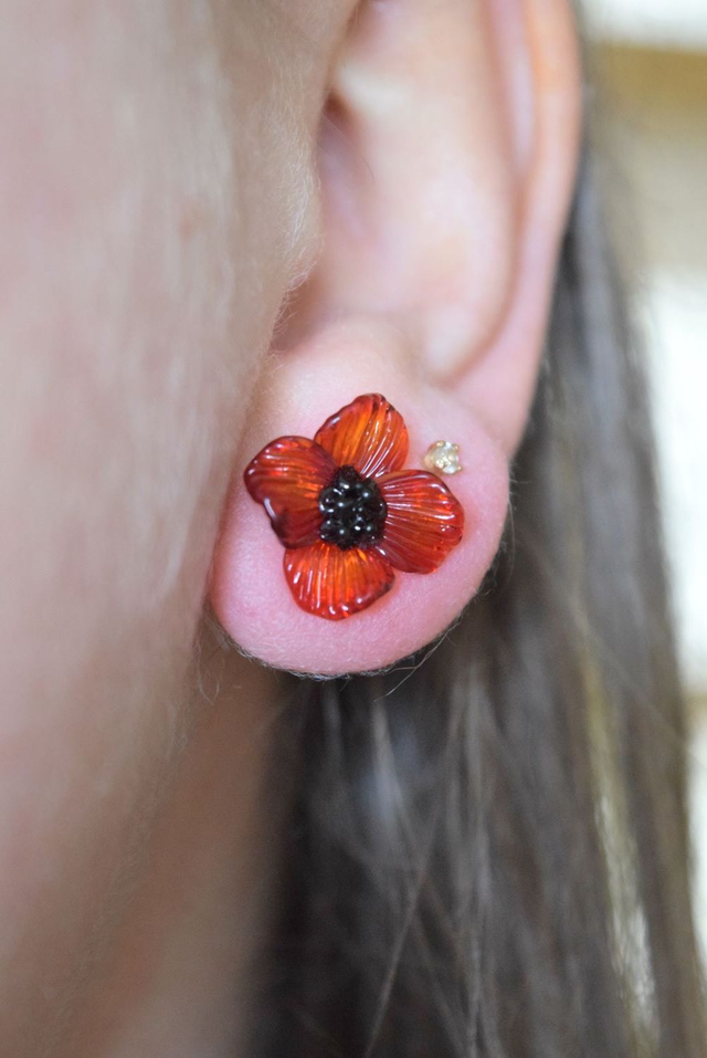 PUCES FLEURS ROUGE TRANSLUCIDE MONTURE INOX GRIS (PF7)