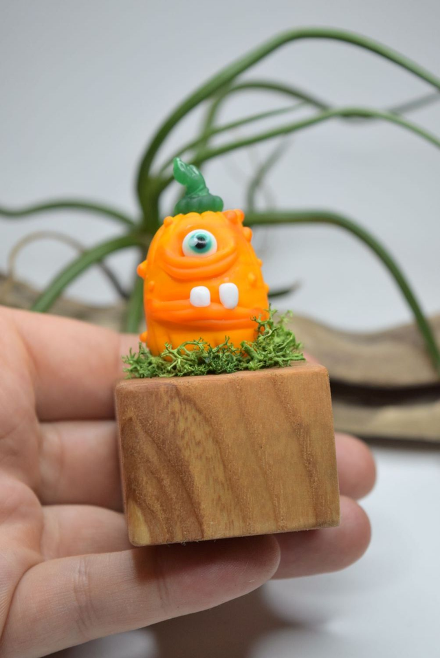 SCULPTURE CITROUILLE SUR SOCLE EN BOIS
