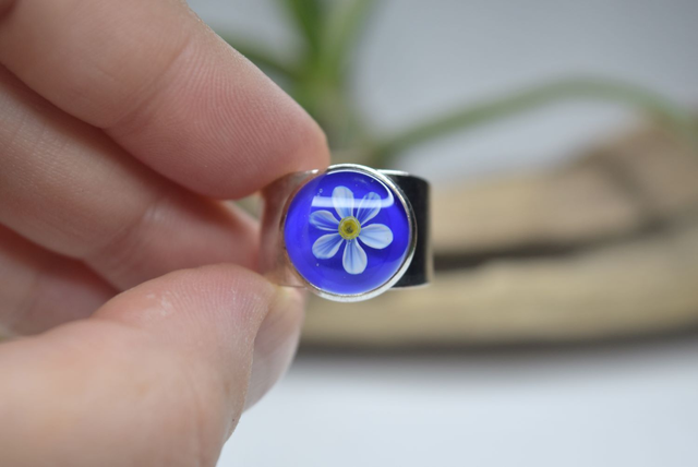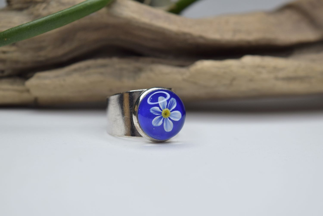 BAGUE RÉGLABLE FLEUR DE NARCISSE MONTURE ARGENT (BF4)