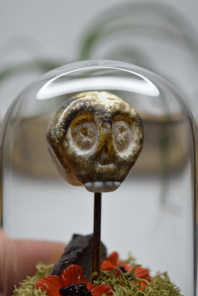 Verre de Murano, base transparente recouvert de couleur ivoire. Verre parsemer de poudre pour un effet « vieillit», le tout fais à la main sous la flamme d'un chalumeau perlier.