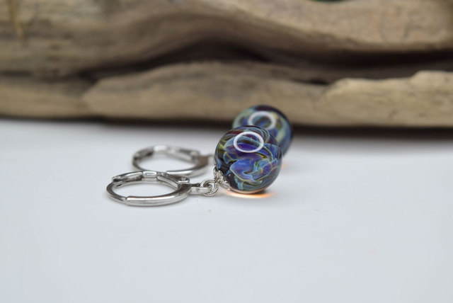 CRÉOLES NÉBULEUSE NOIRE MONTURE ARGENT