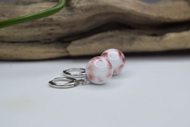 Verre de Murano, base de couleur blanche & petit point de couleurs fondus minutieusement sous la flamme d'un chalumeau perlier.