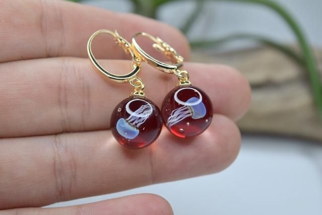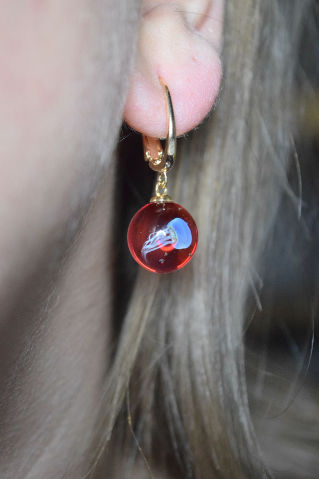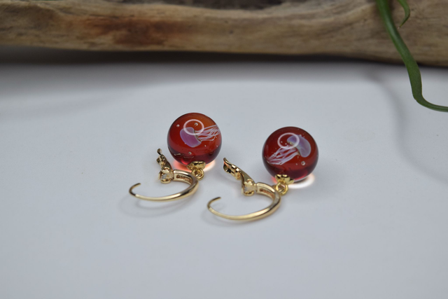 DORMEUSES MÉDUSE ROUGE MONTURE OR