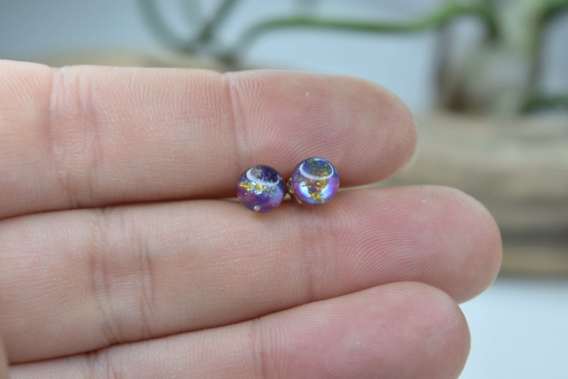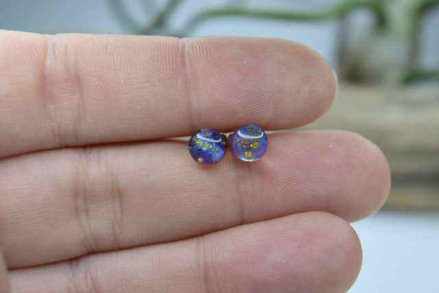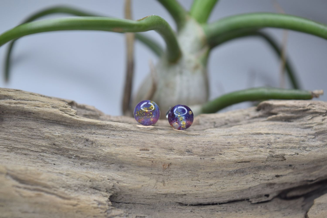 Verre de BOROSILICATE VIOLET / ROSE, poudre d'argent 999 incrustée.